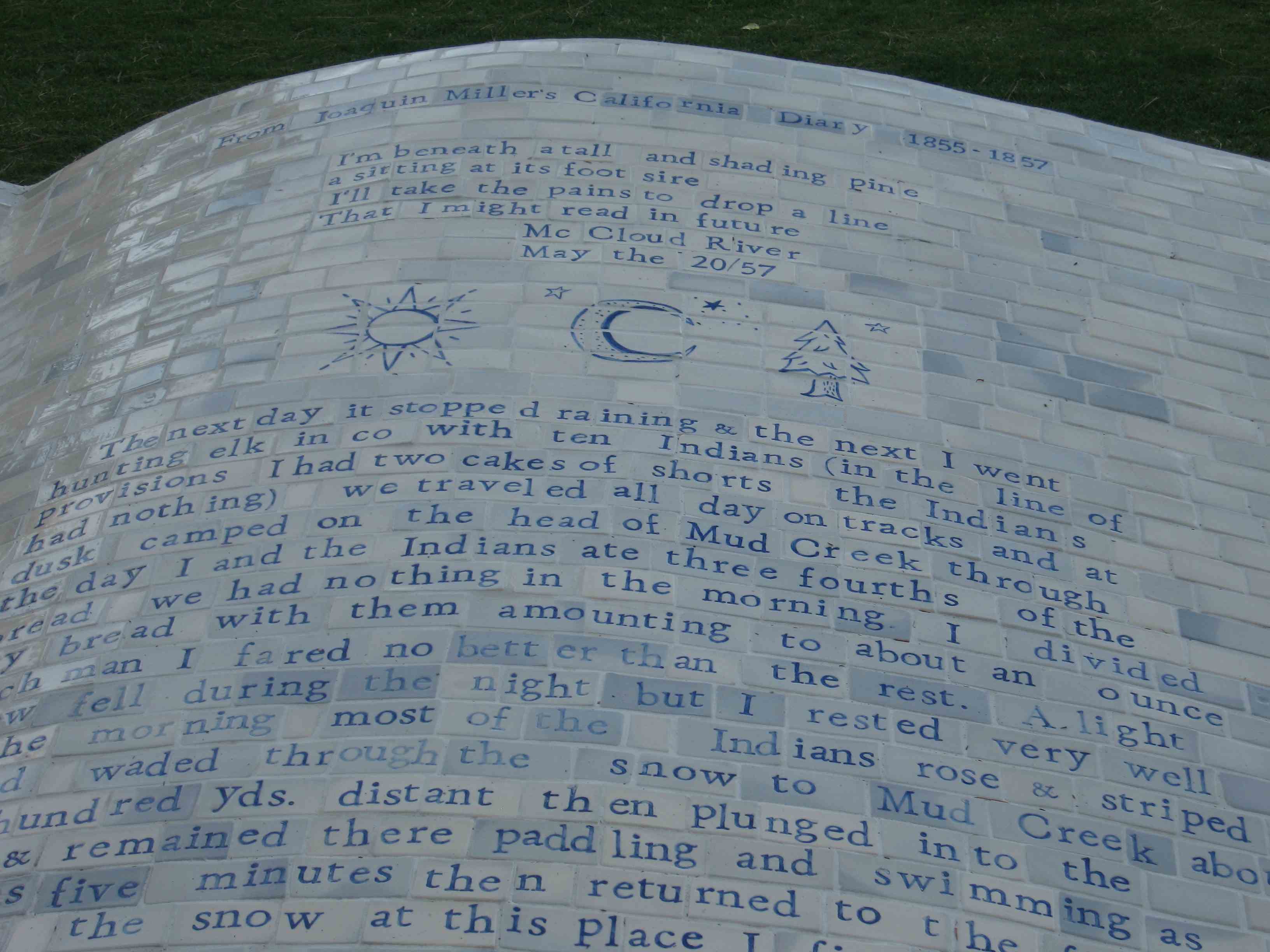 Northern California artist Mark Oliver has created a monumental tribute to the poet Joaquin Miller in a McCloud California park. Extraordinary combination of the written word, history, poetry and art.